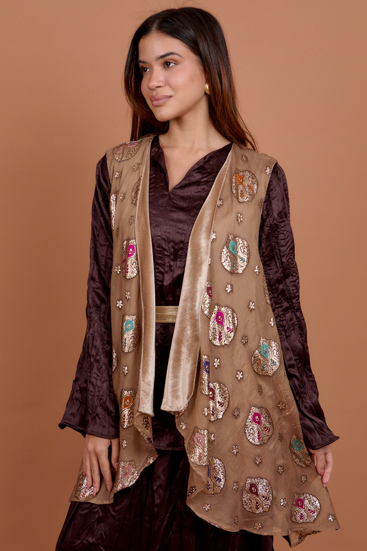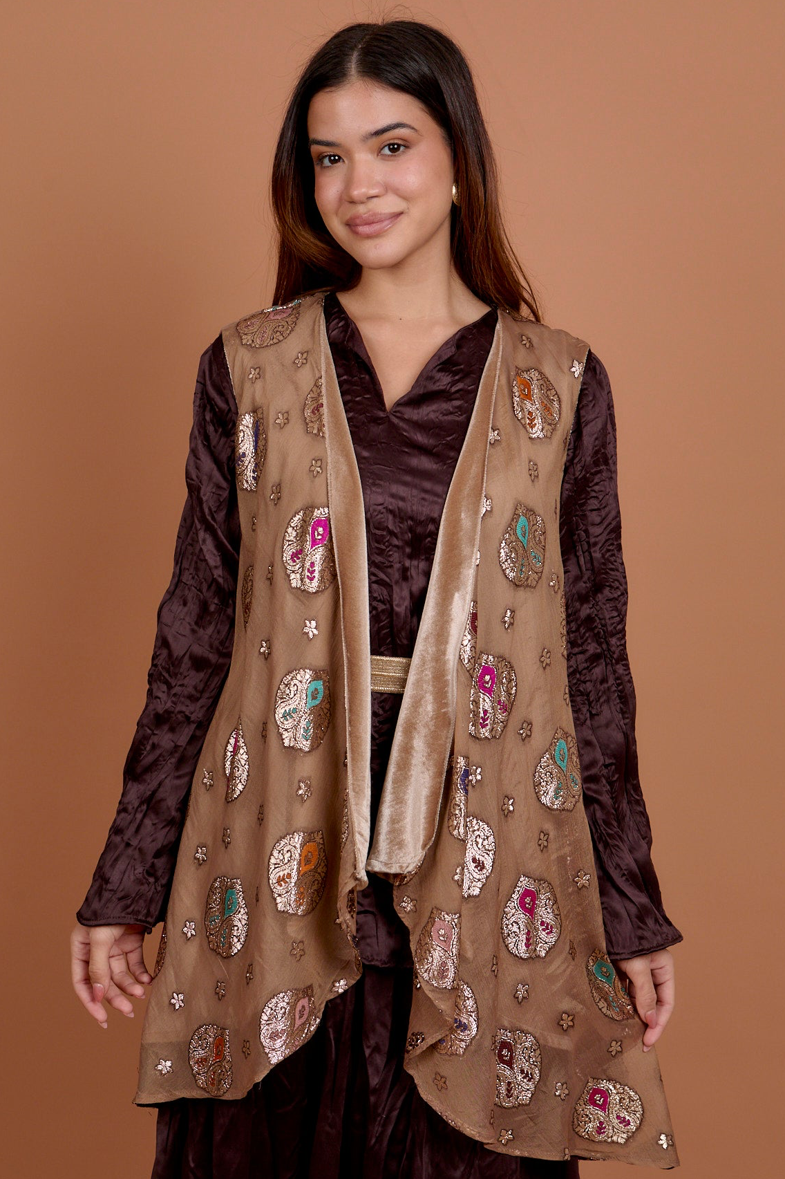 Metallic Mocha Vest - velvet coated