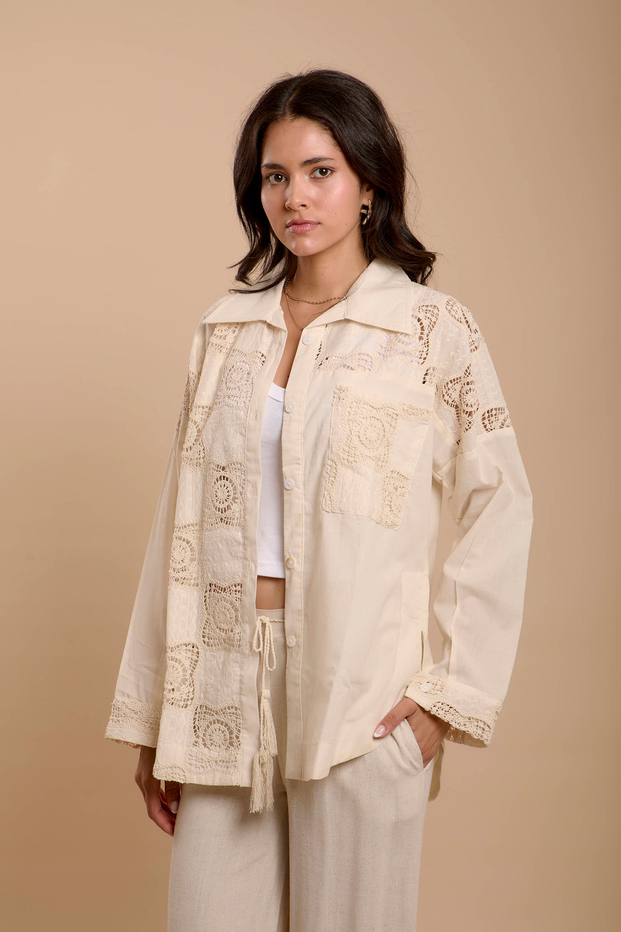 Wool Jacket with Pockets - off-white