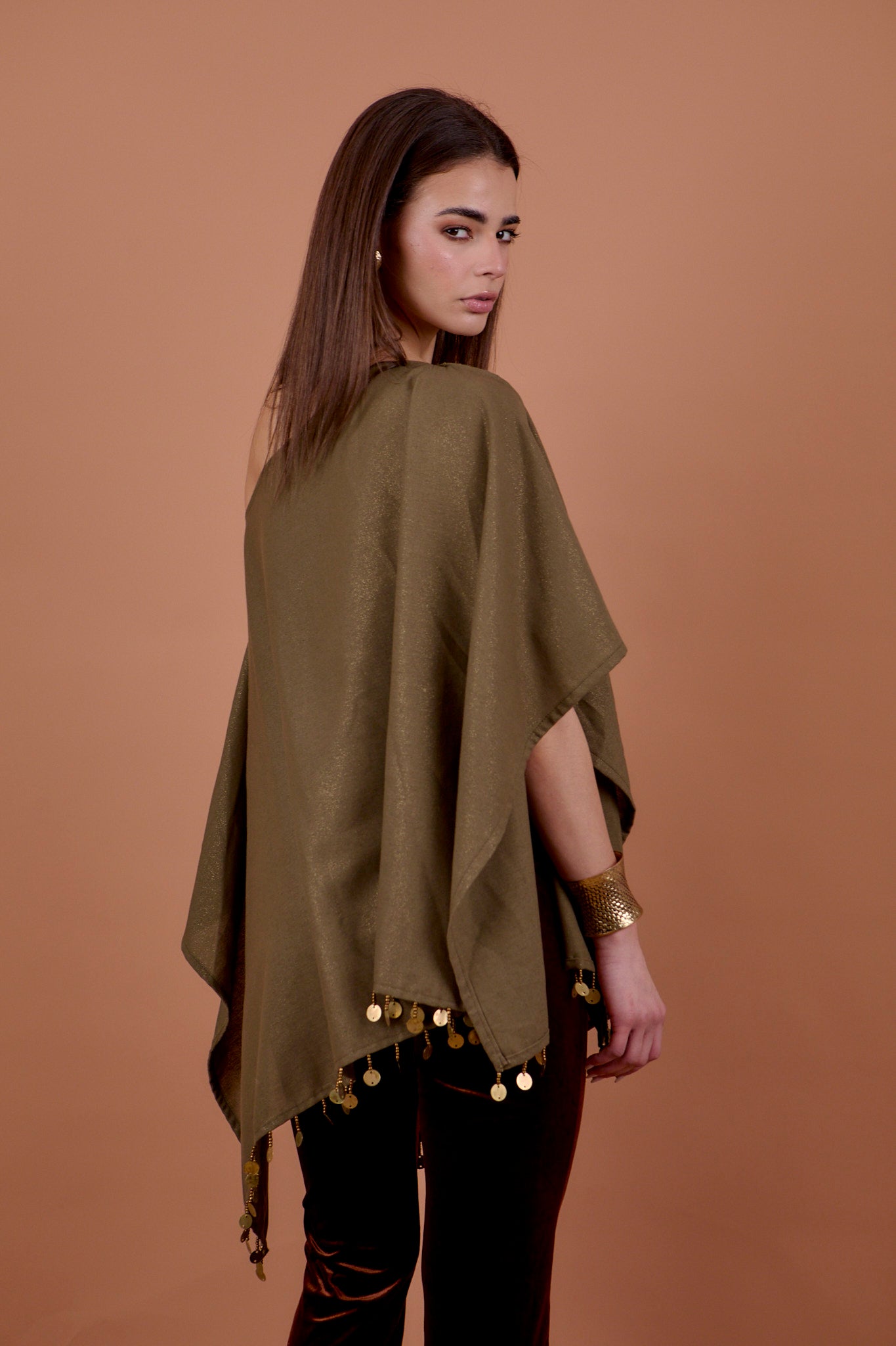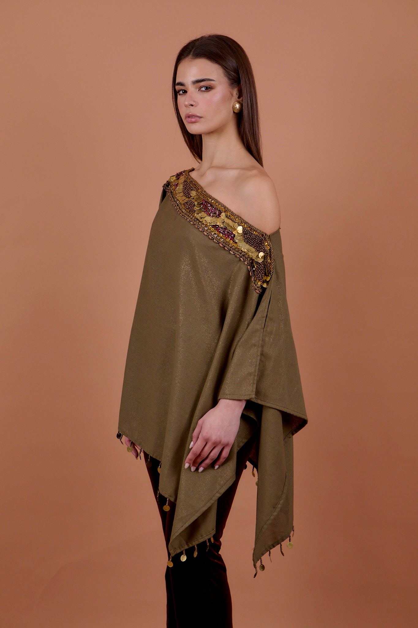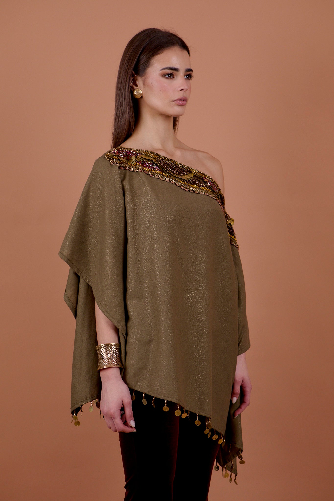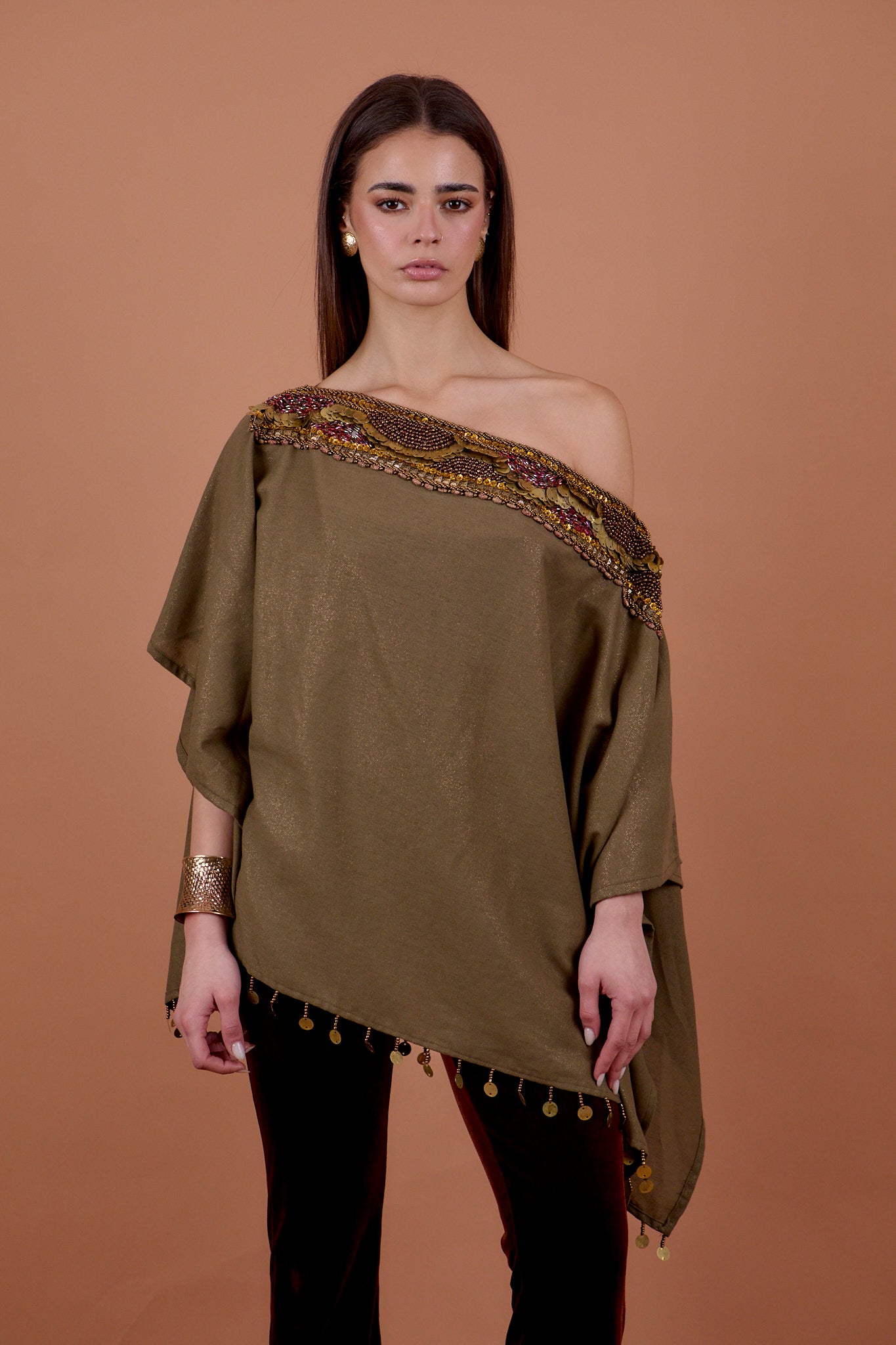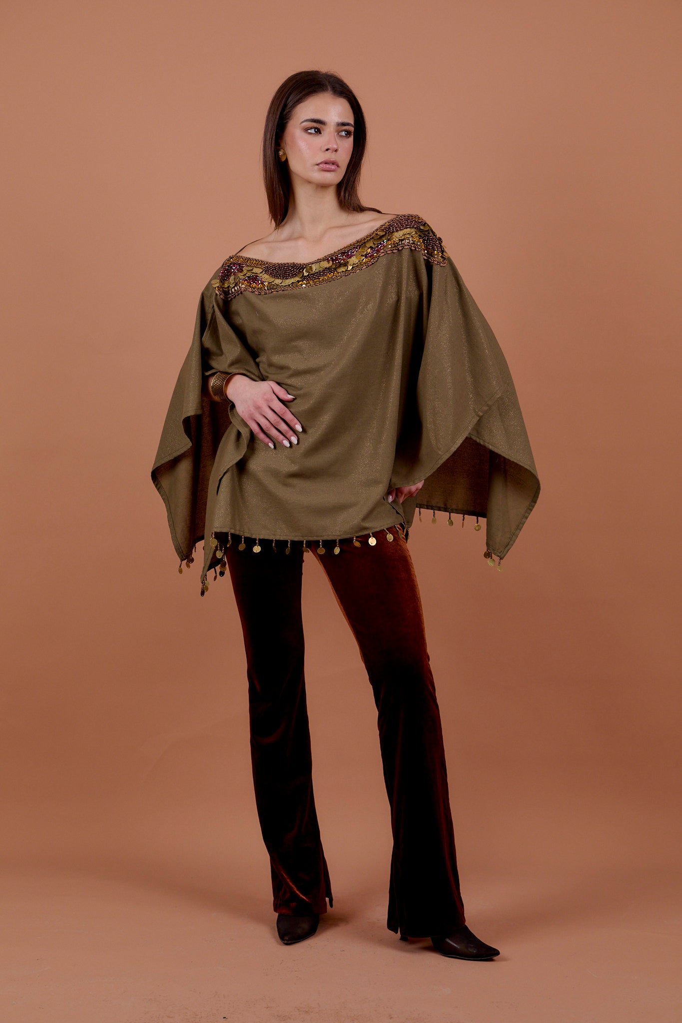 Suede Blouse,chiffon sleeves Golden handmade Work