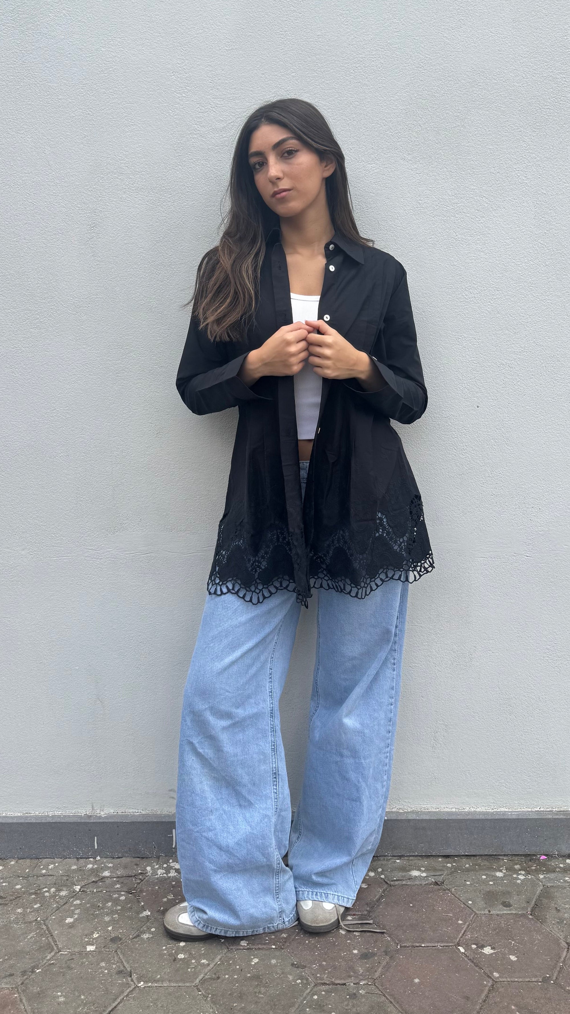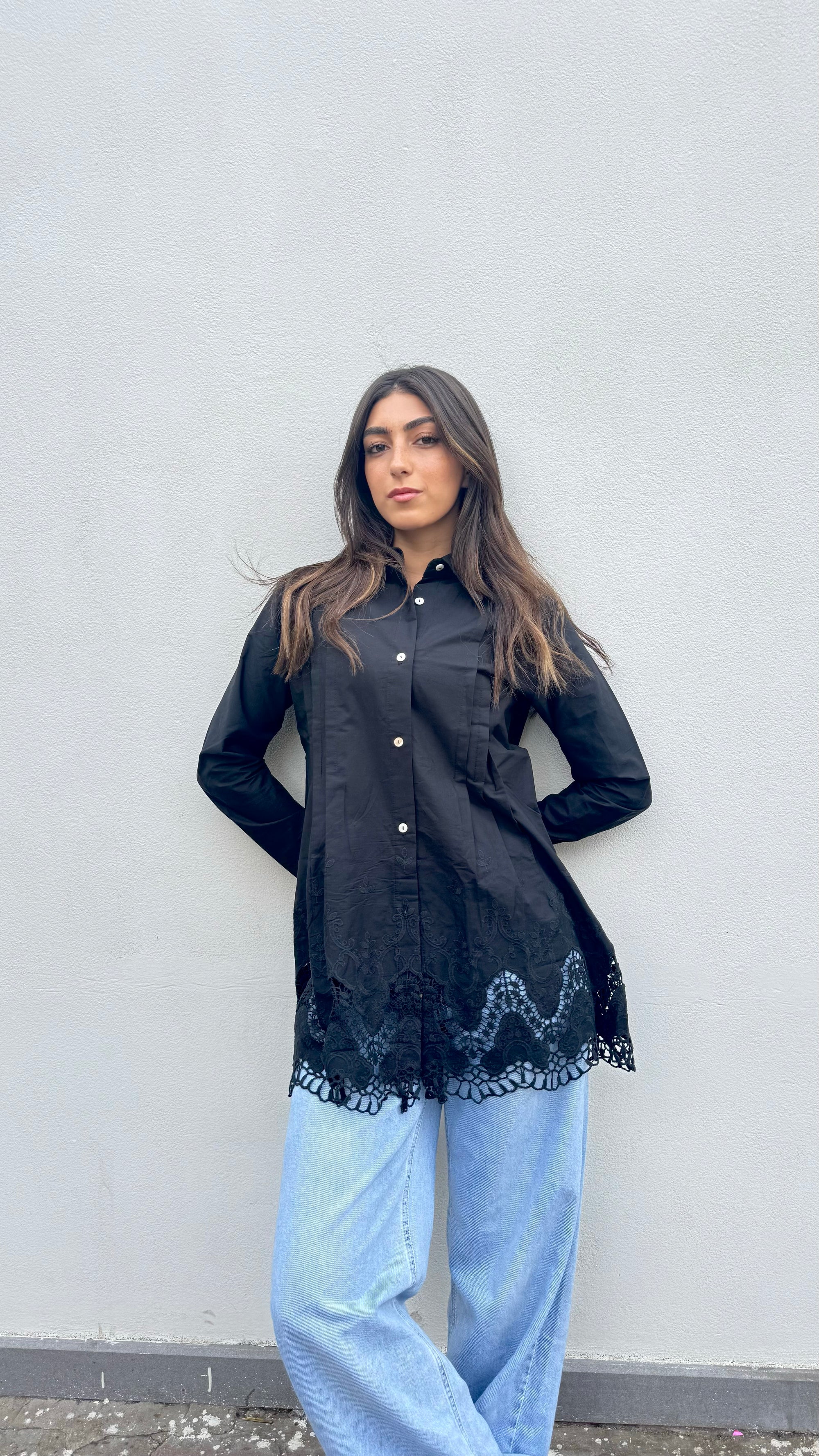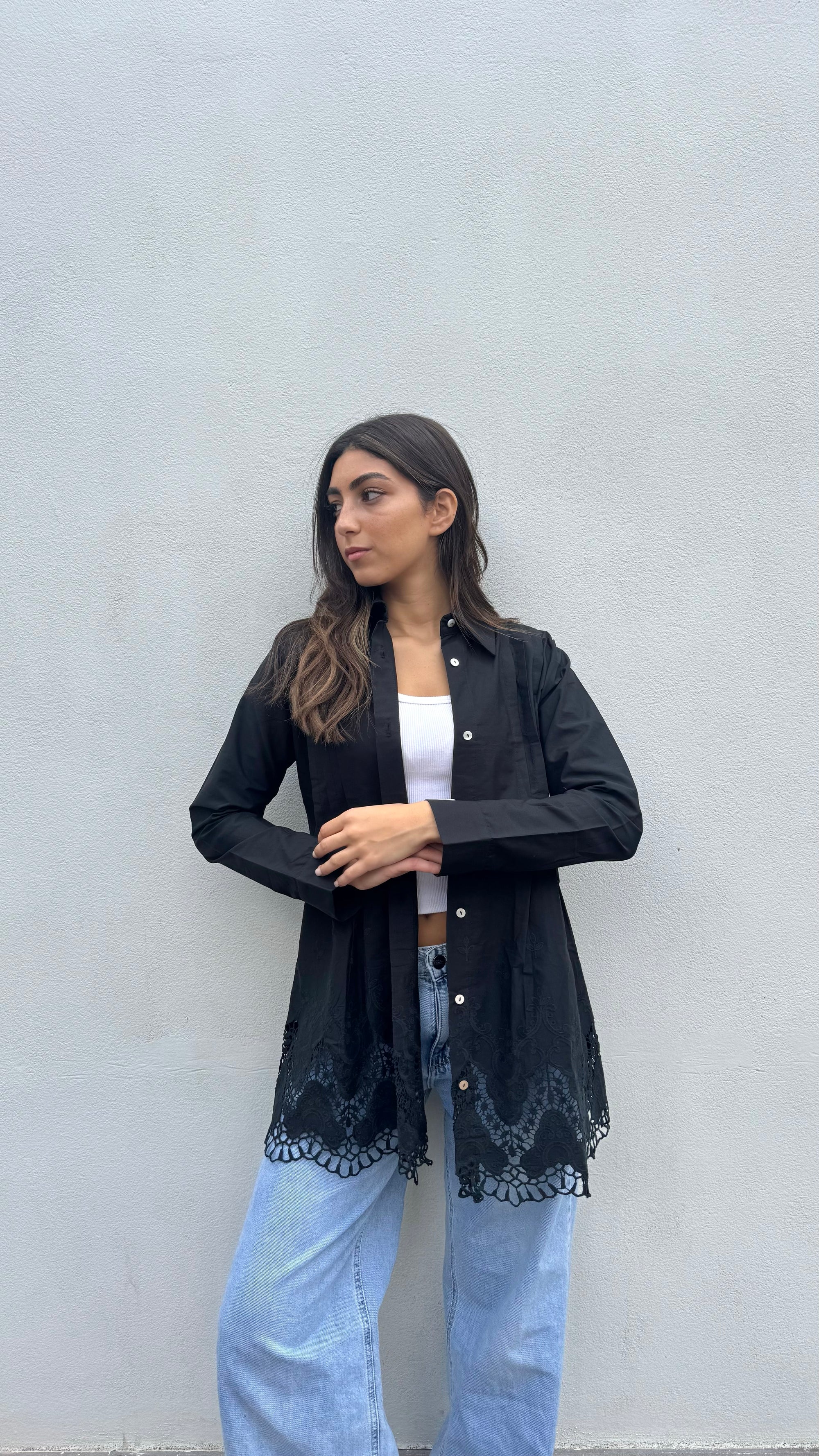 Black Poplin embro Shirt