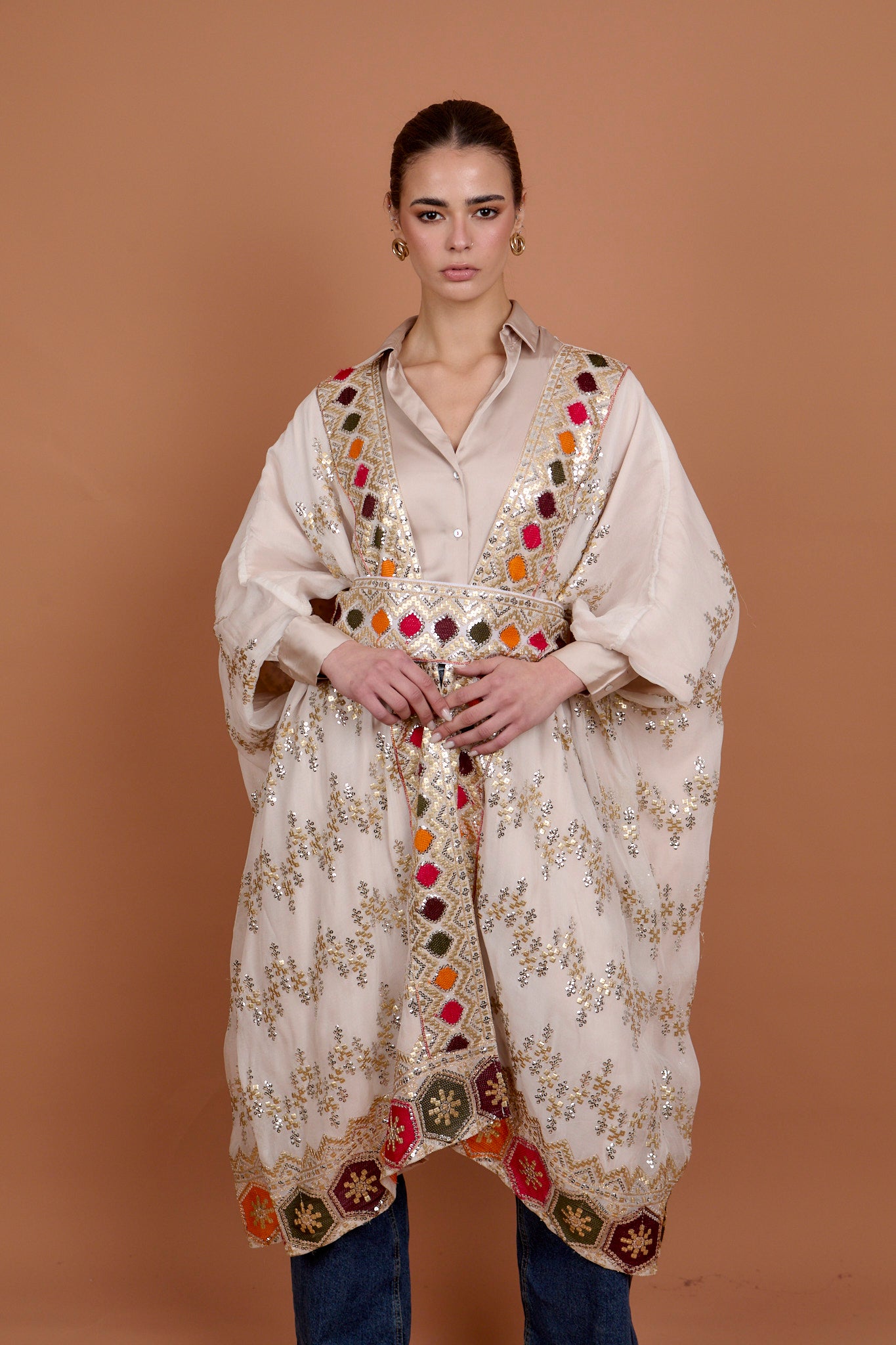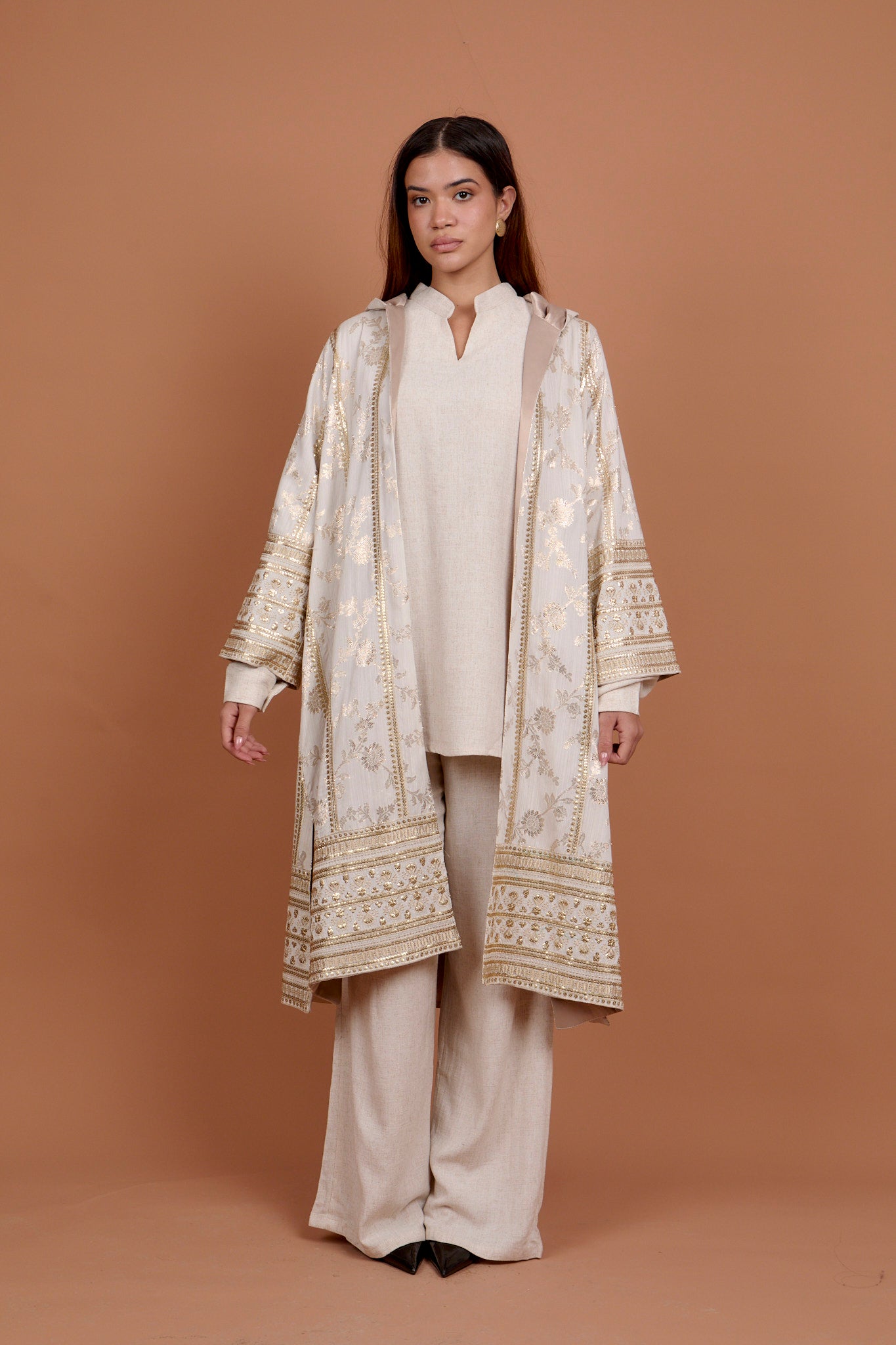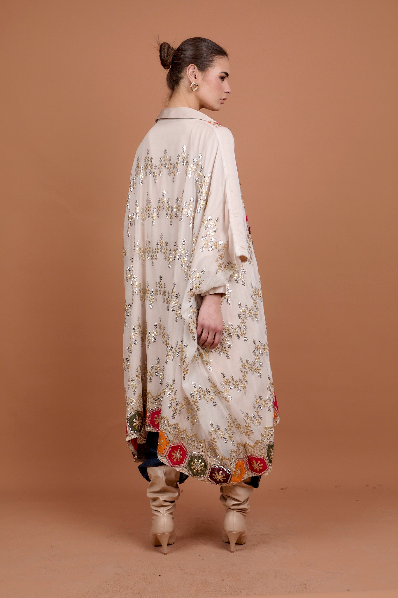 Beige Embro applique kaftan