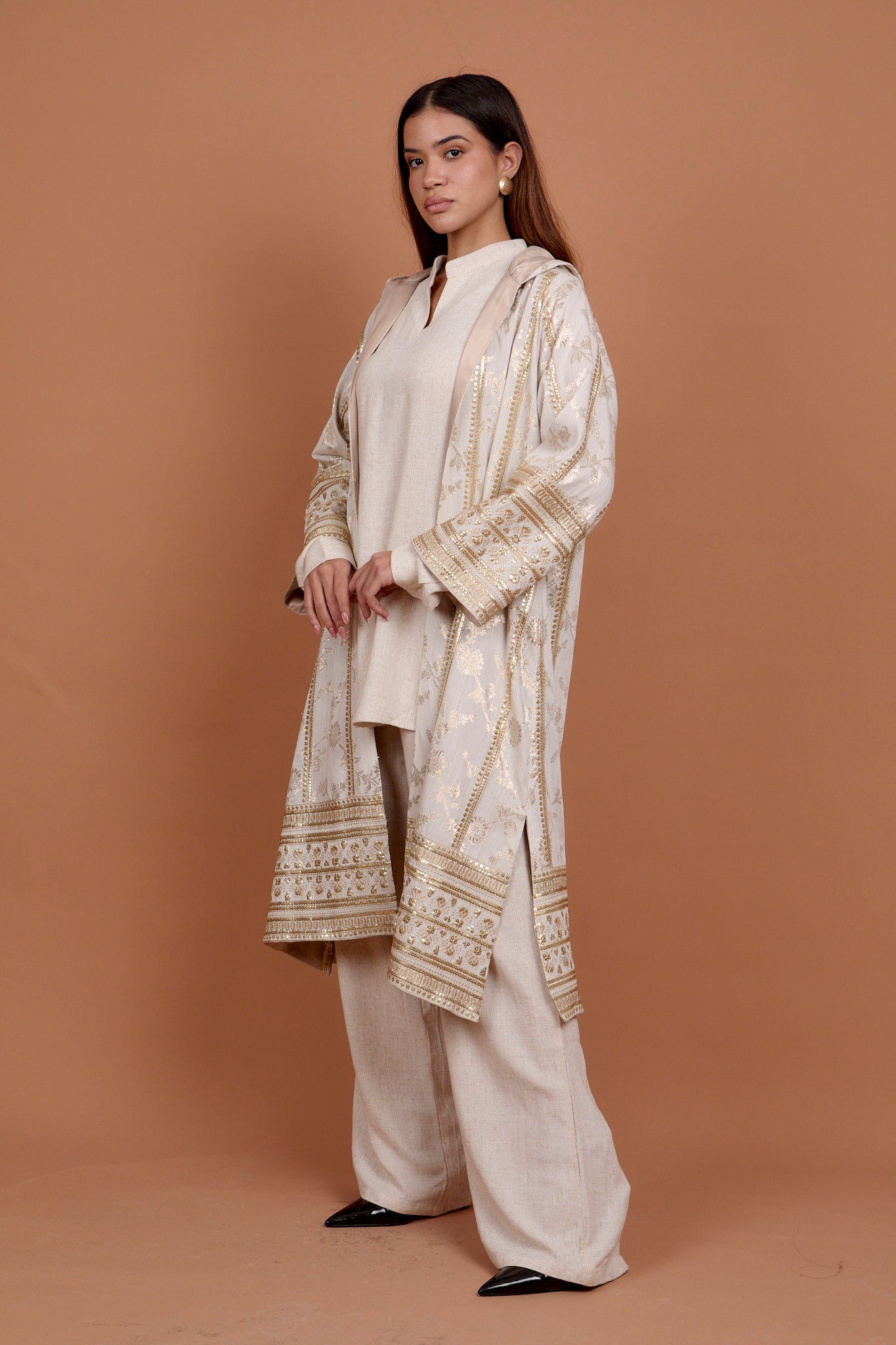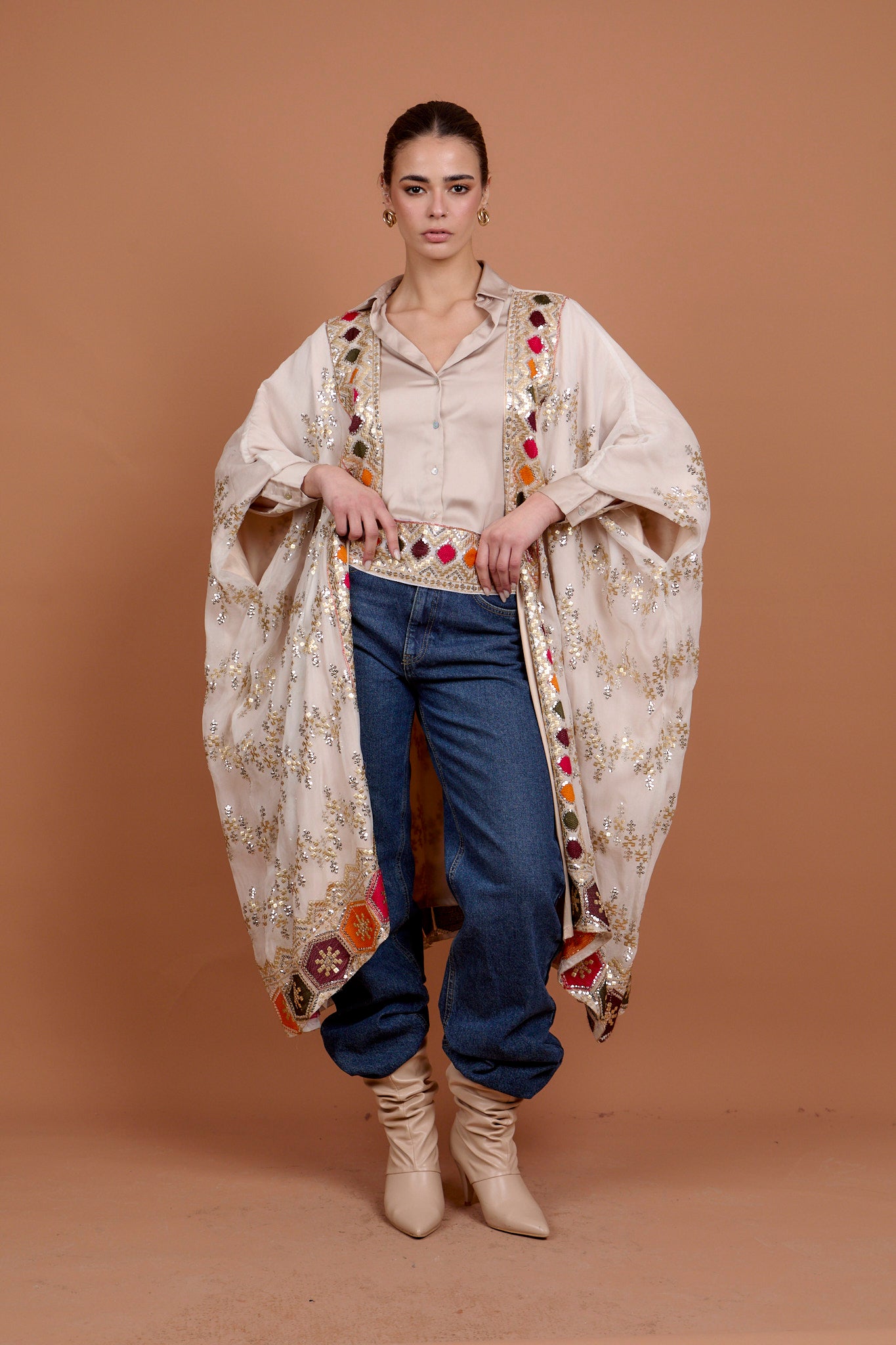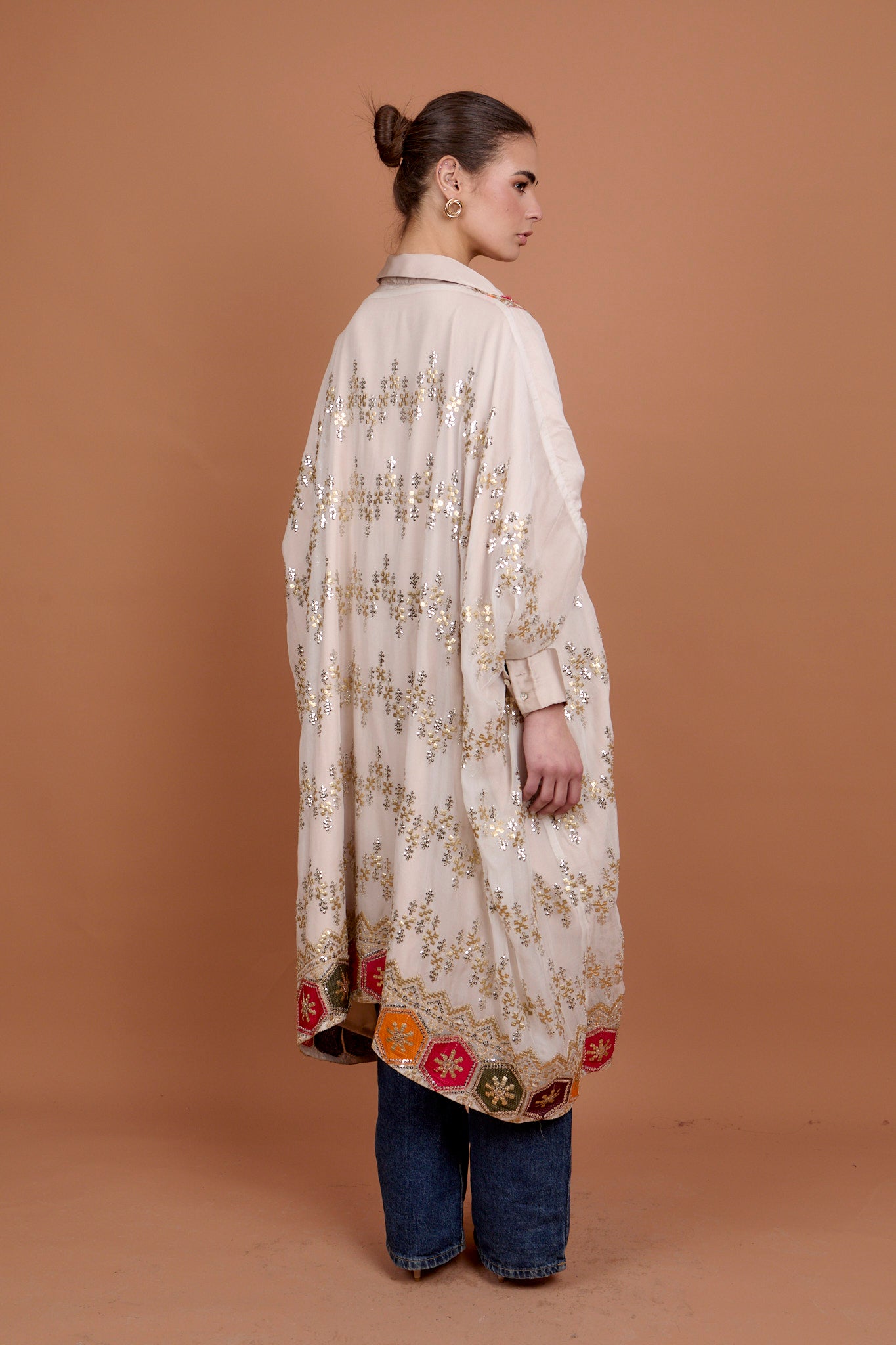 Beige Embro applique kaftan