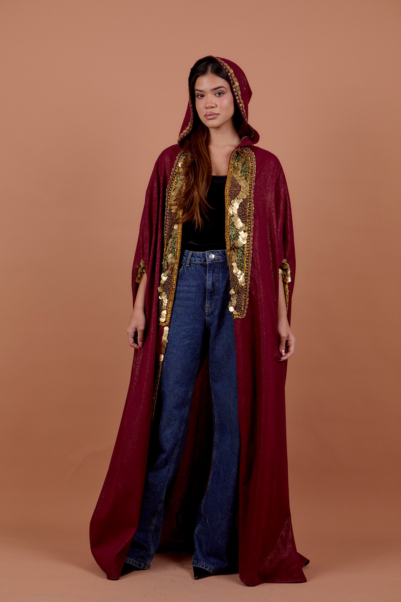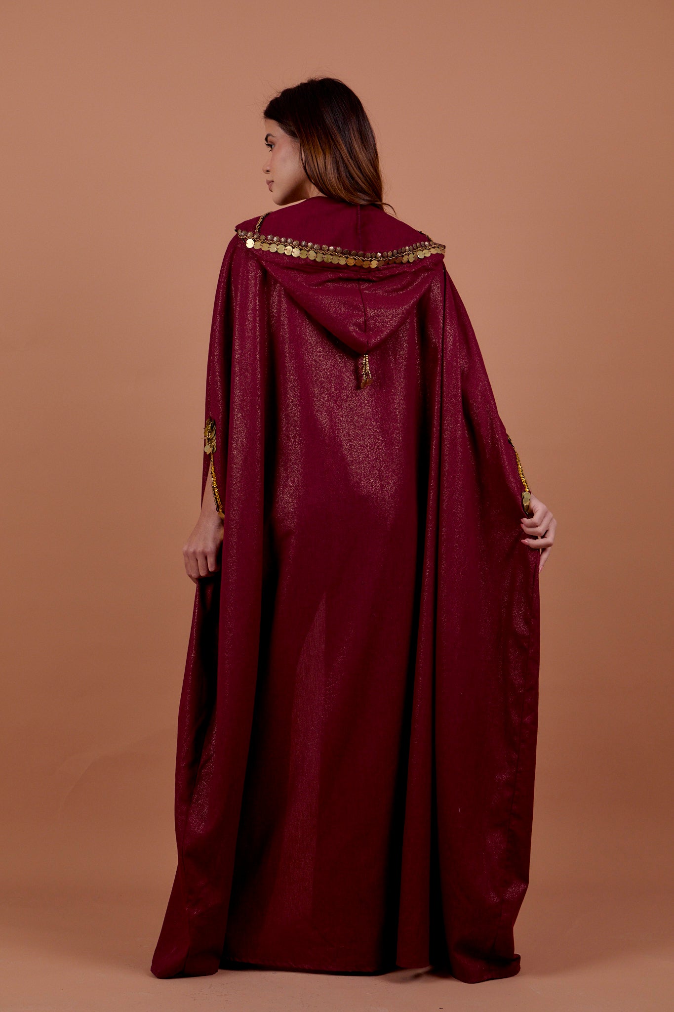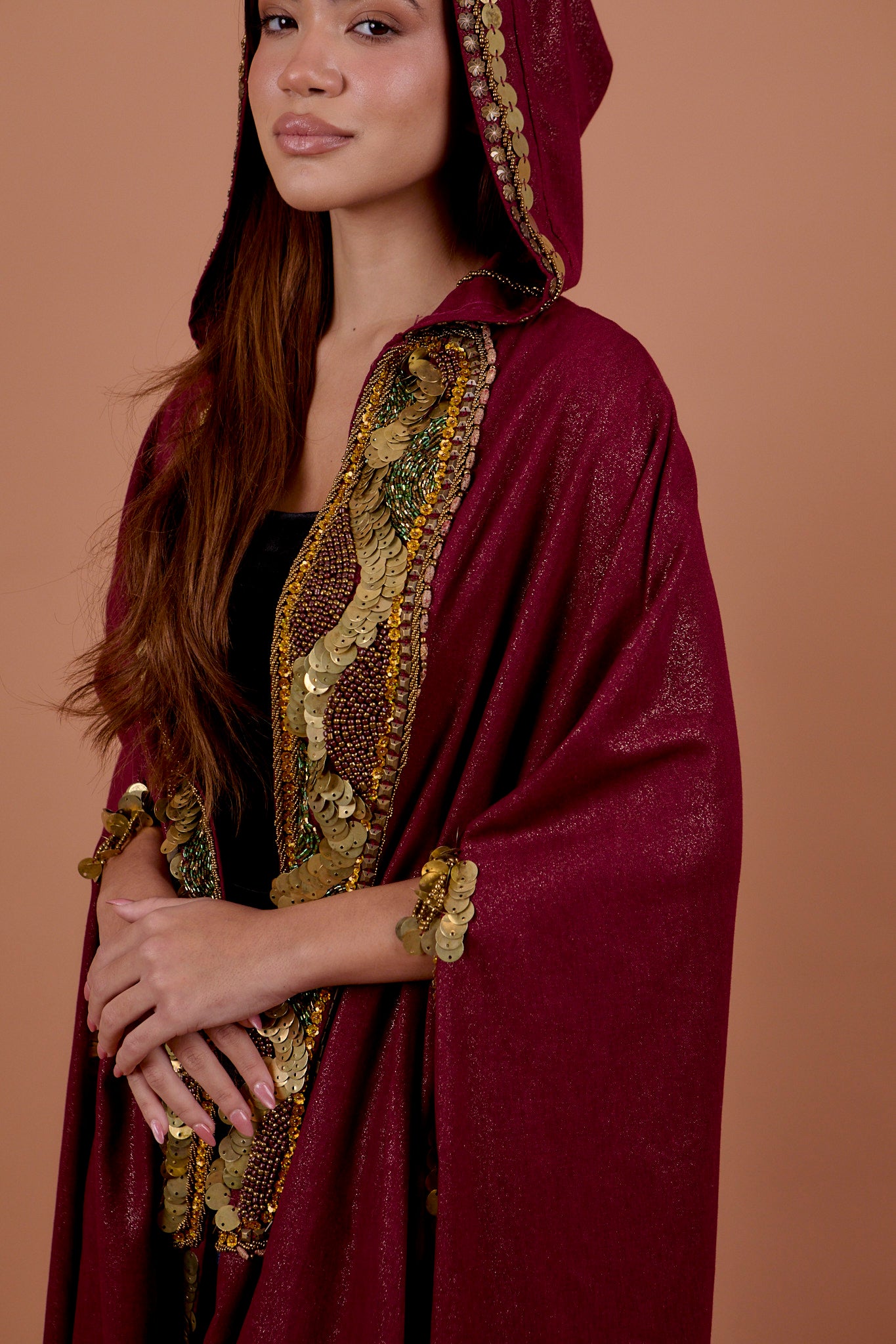 Burgundy handwork Hoodie Cape
