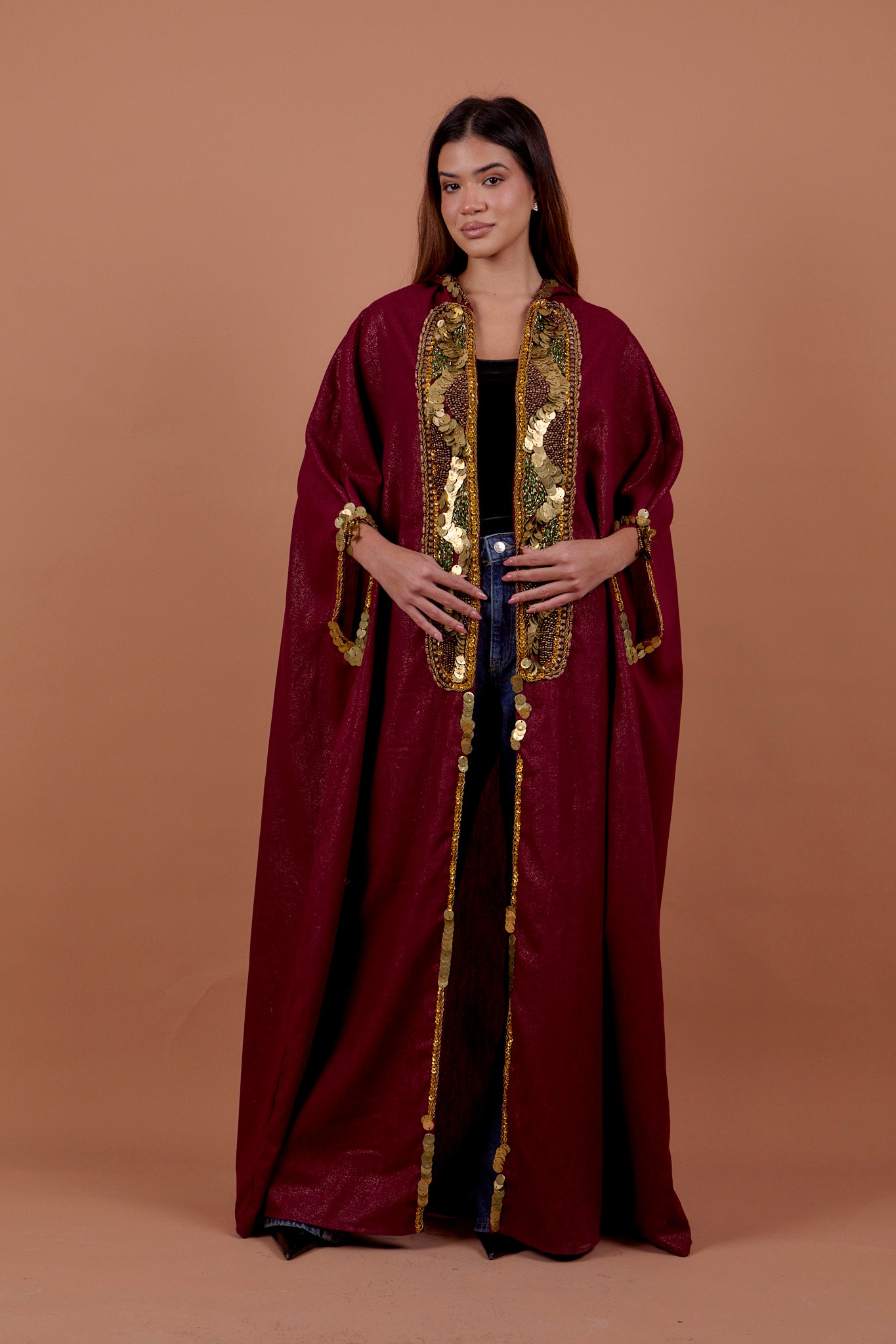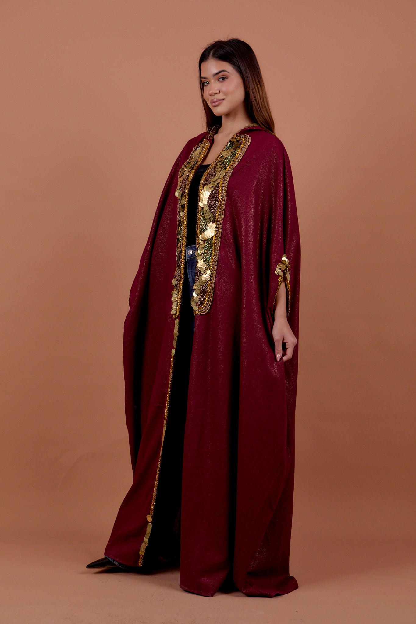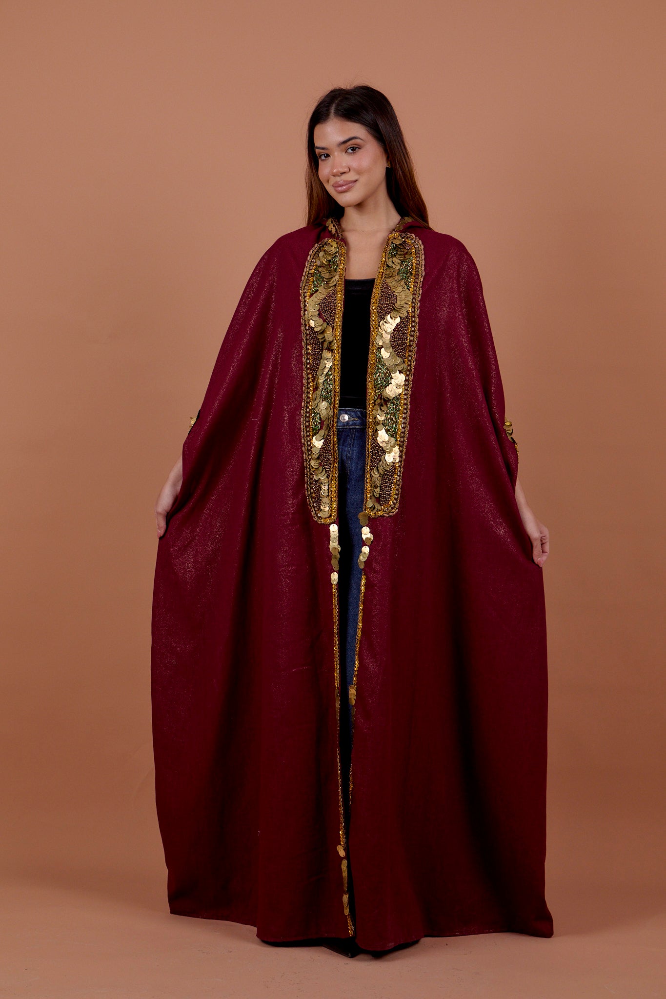 Burgundy handwork Hoodie Cape