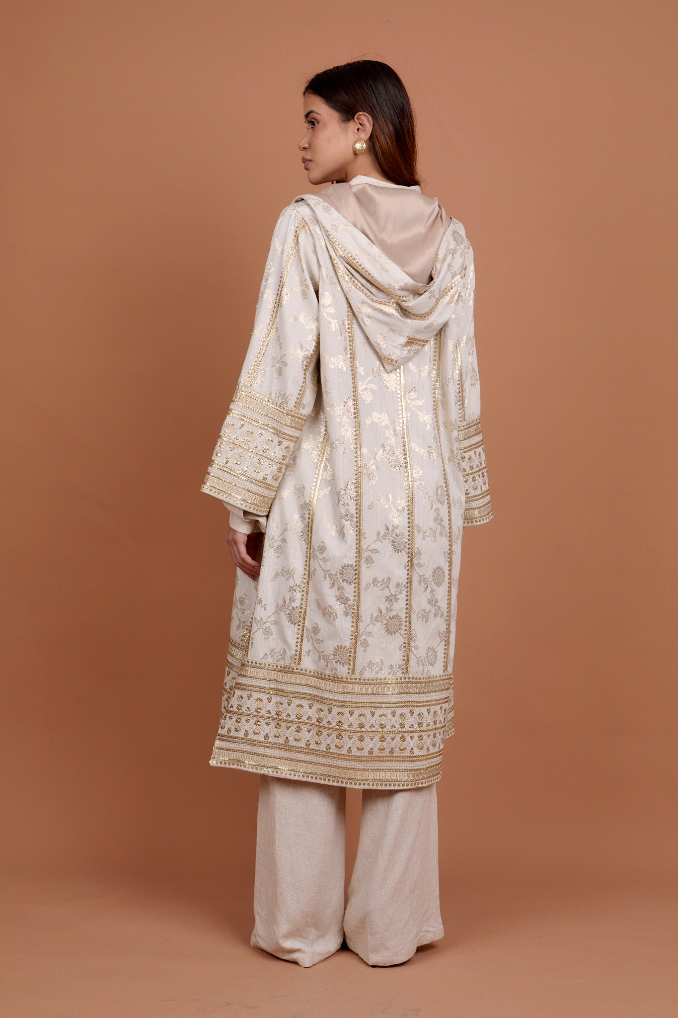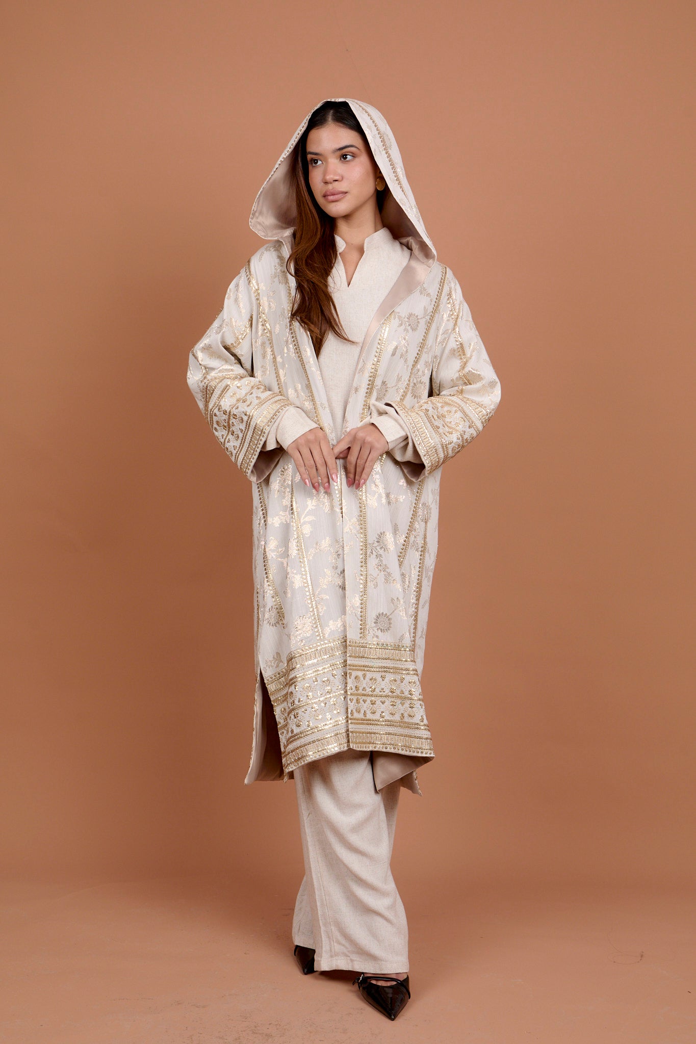 Beige Handmade oriental embelishments gold & green