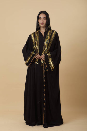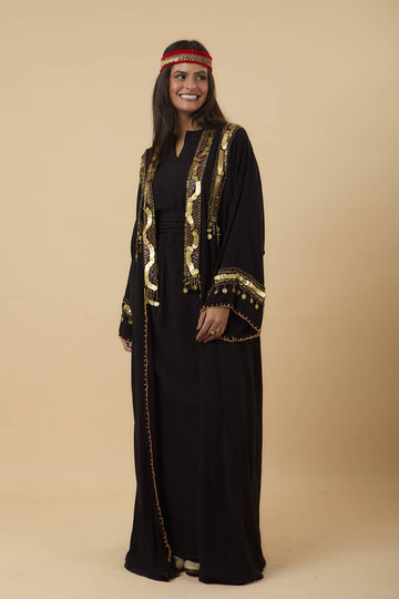 Black Handmade oriental embelishments gold & green