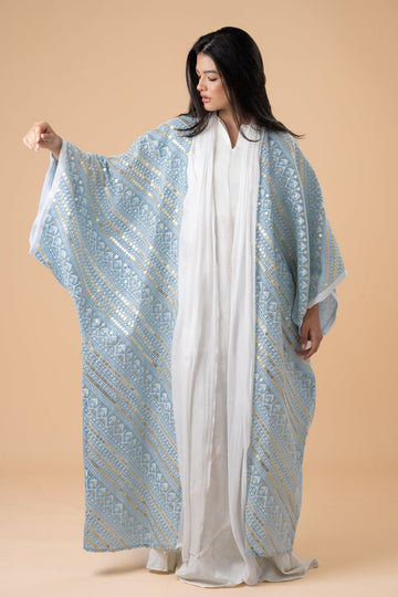 White, Silver Embro Kaftan