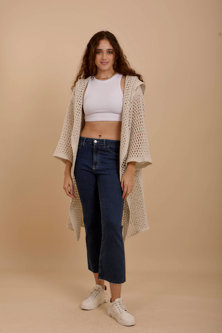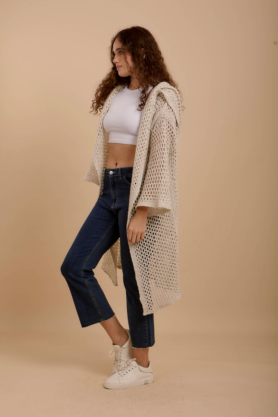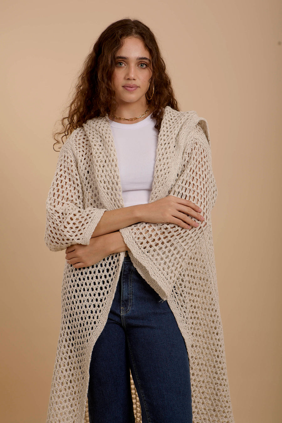 Metallic threads Crochet Jacket off-white