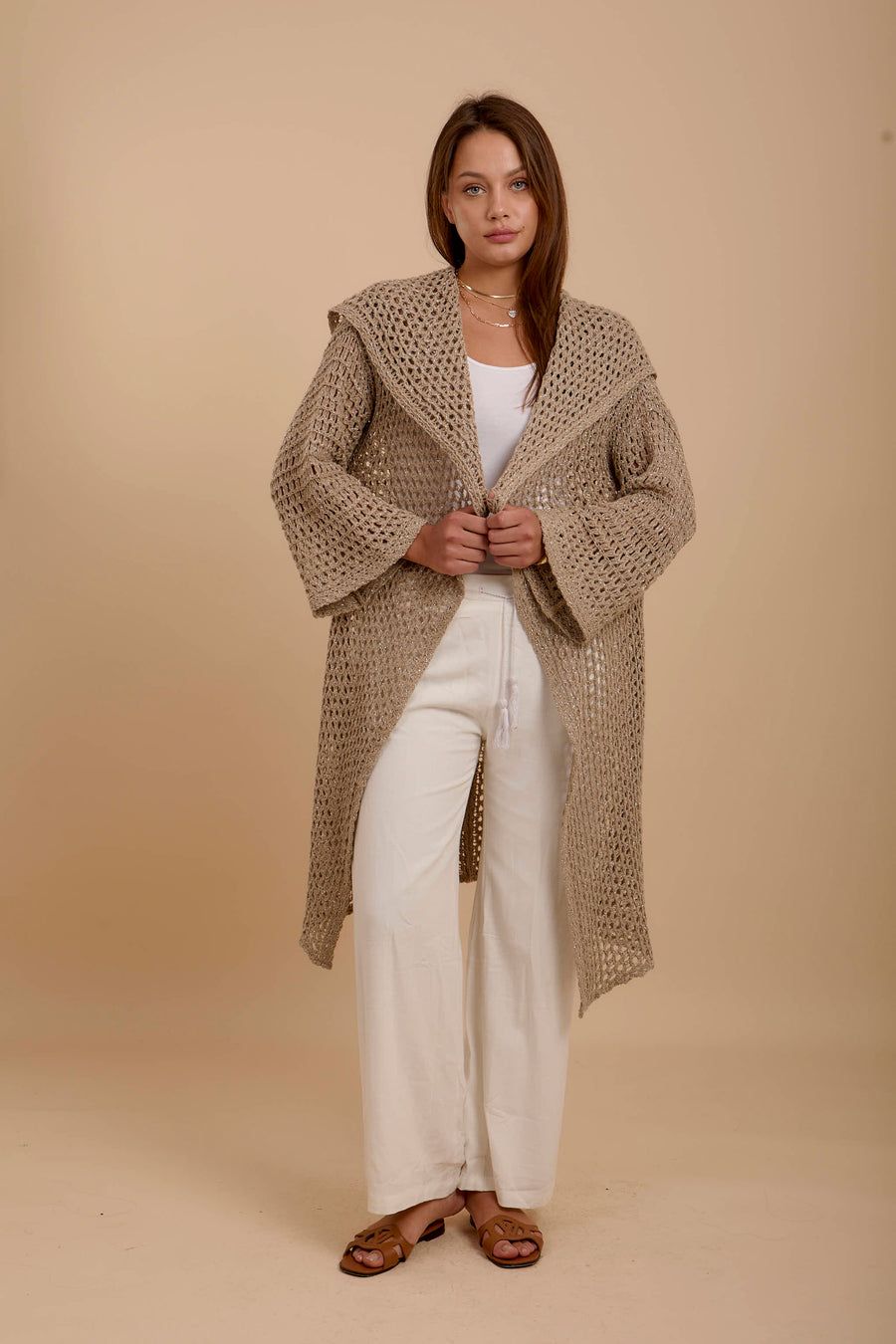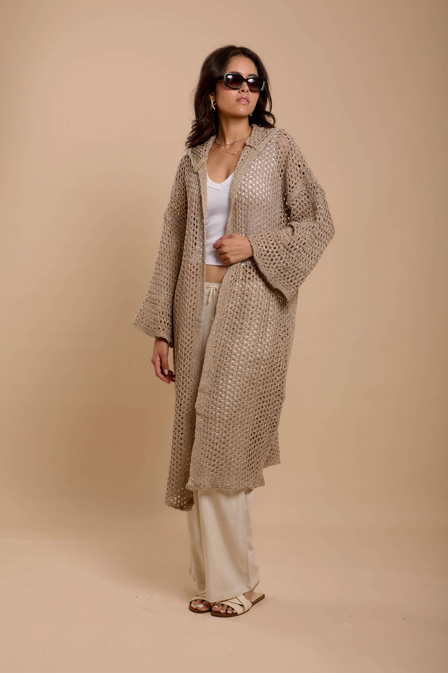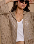 Metallic threads Crochet Jacket Beige
